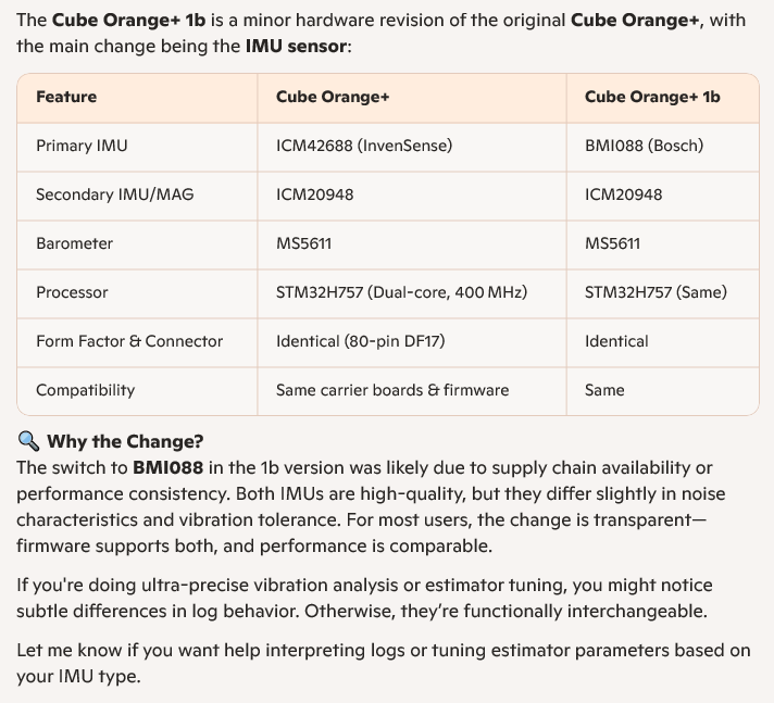 What is the difference between the Pixhawk Cube Orange+ and the Orange+ IB?