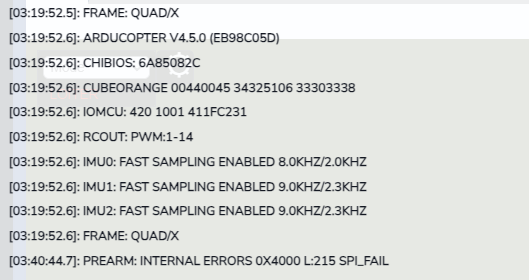 “PreArm: Internal errors 0x4000 l:215 spi_fail.”