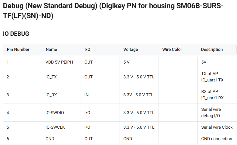 I’m trying to use the 6-pin SUR SWD connector to ST-link v2, and want to verify the pinout. Is the attached pic from your Interface specs suitable for Here4 SUR header. (There is no specific mention.). See the screen grab from the interface specs. thanks.